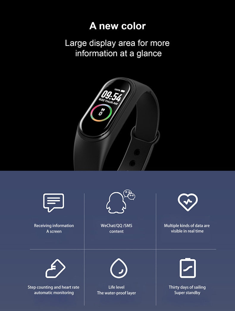 Smart Bracelet Fitness Tracker Waterproof Heart Rate Blood Pressure Fitness Bracelet Smart Watch